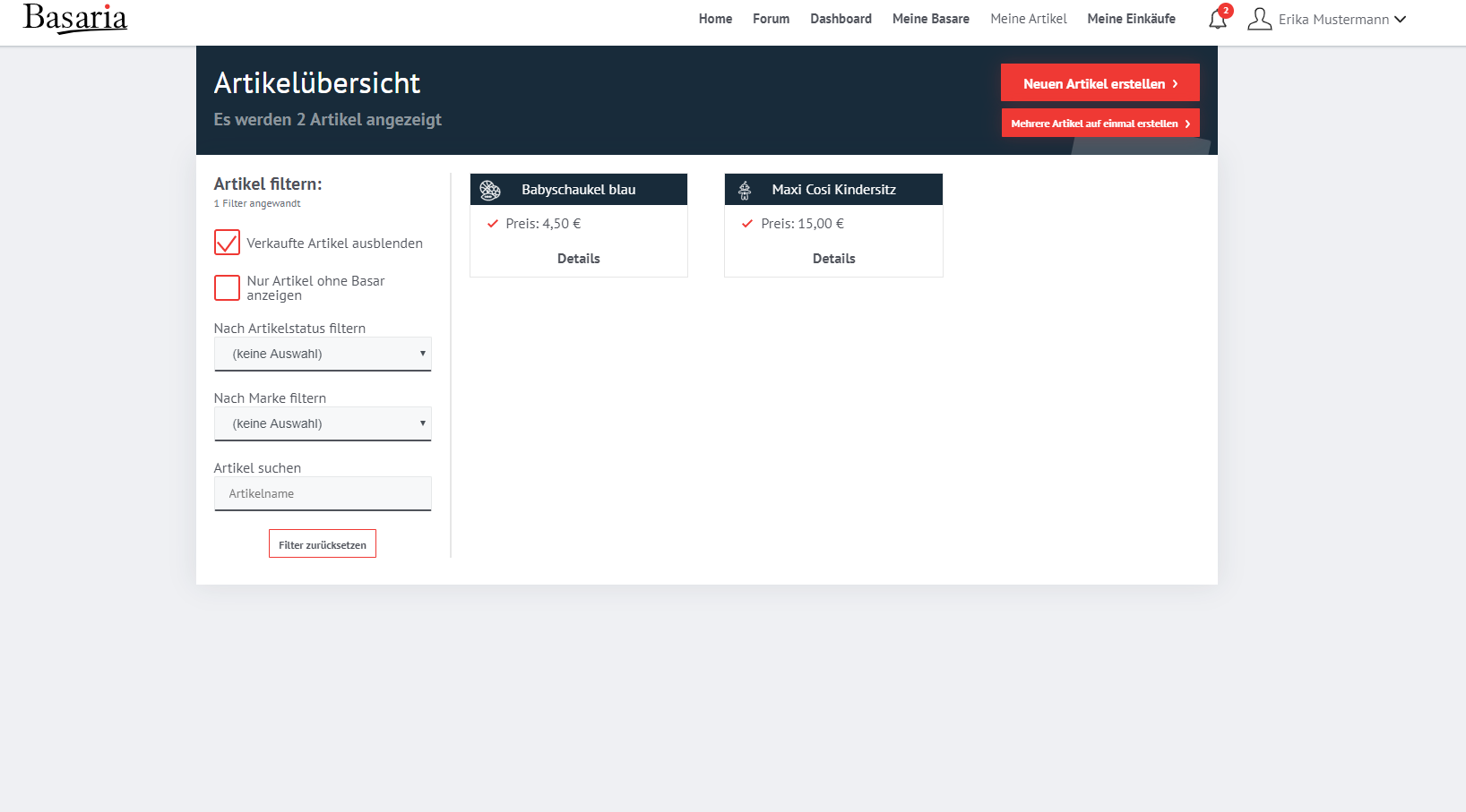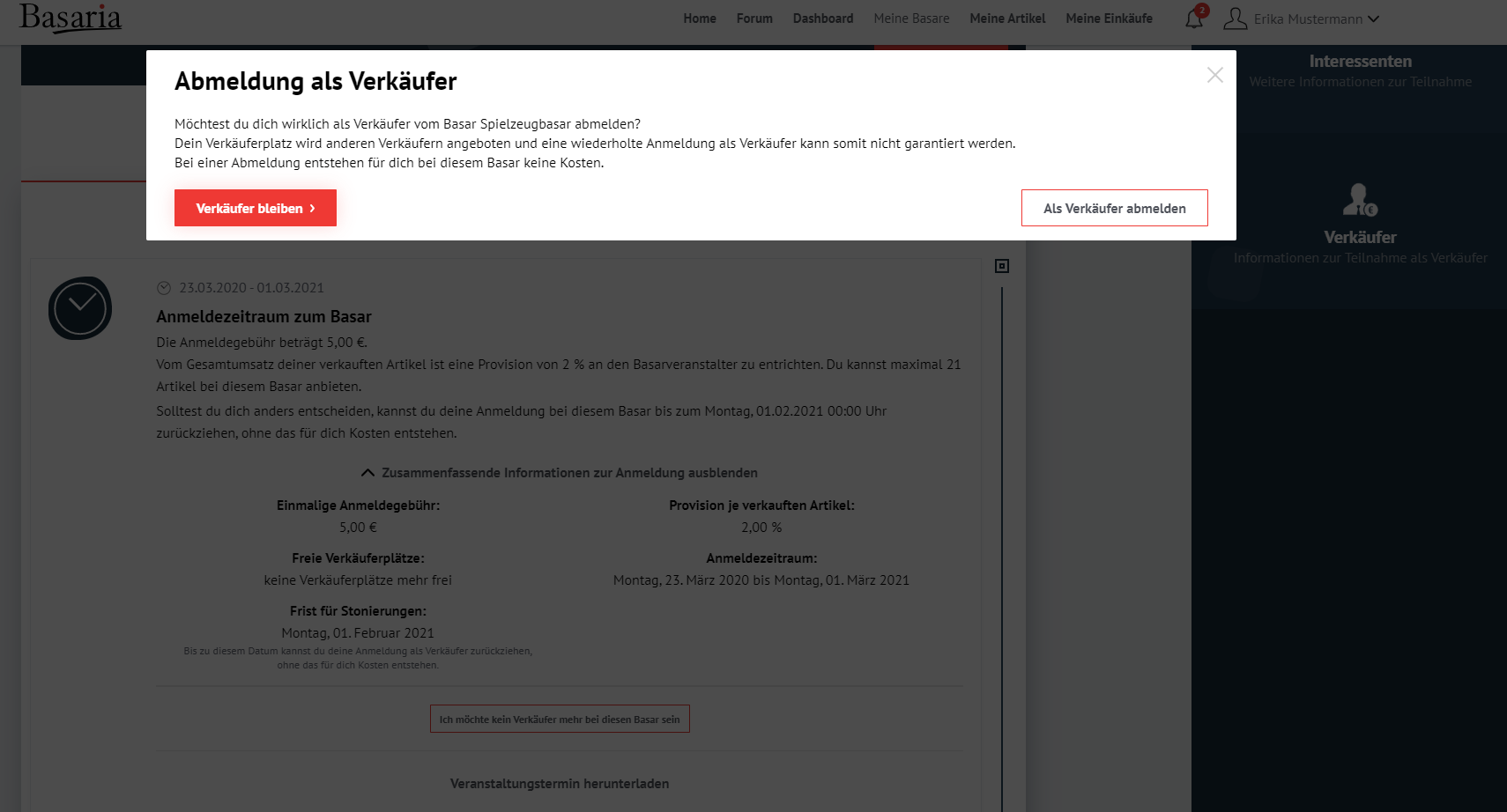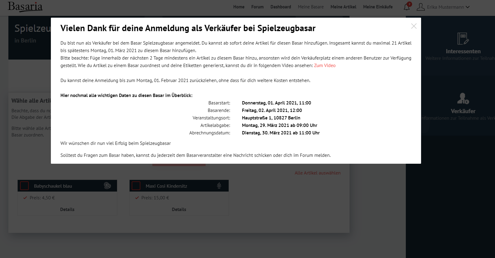 Anmeldung als Verkäufer bei einem Basar
